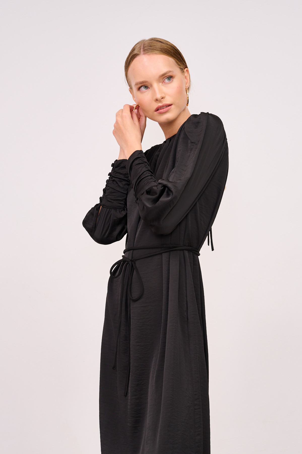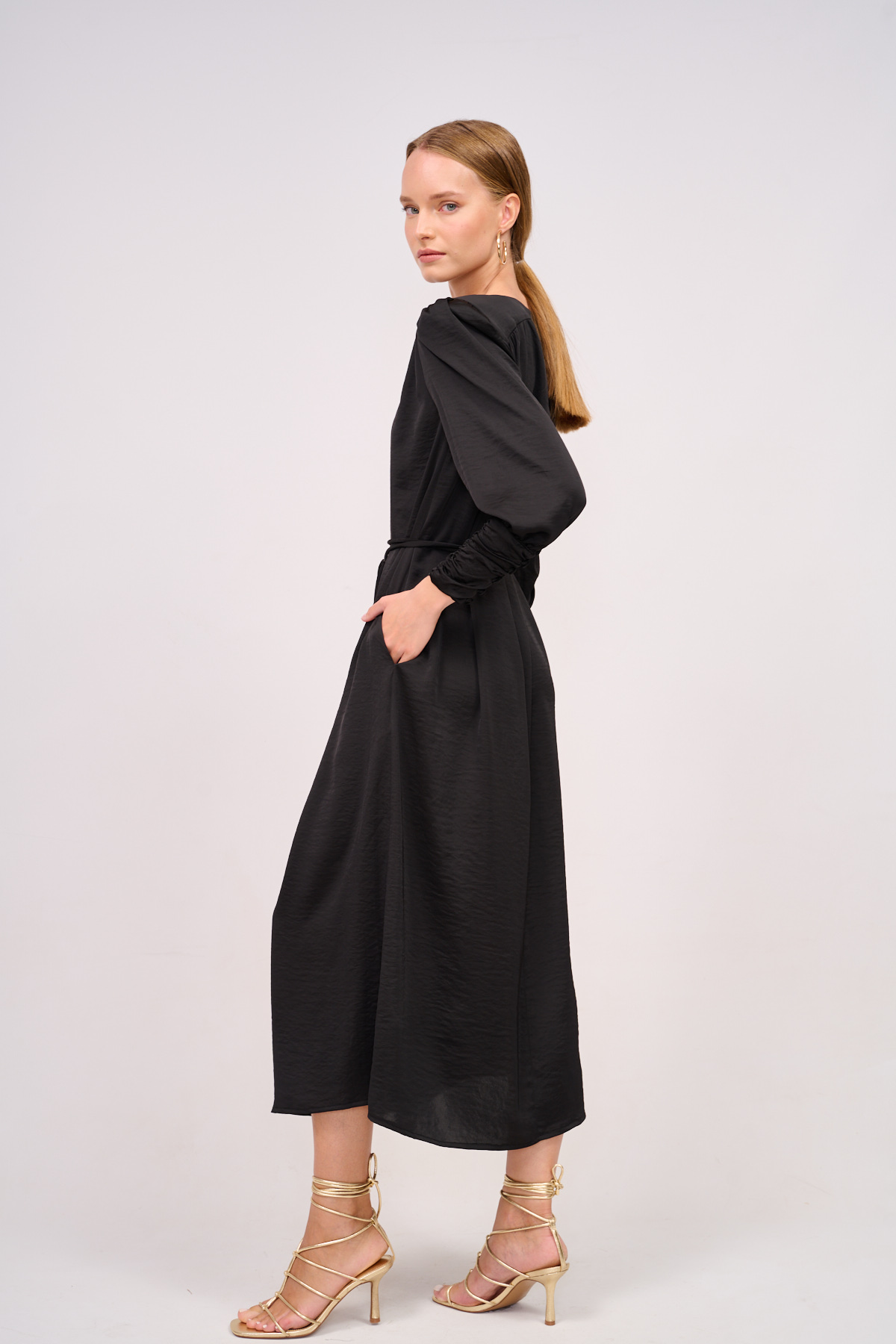 גזרה ישרה באורך מקסי רחוקה מעט מהגוף כך שניתן ללבוש אותה גם ללא חגורה ועדיין שומרת על המראה מאוזן ונקי