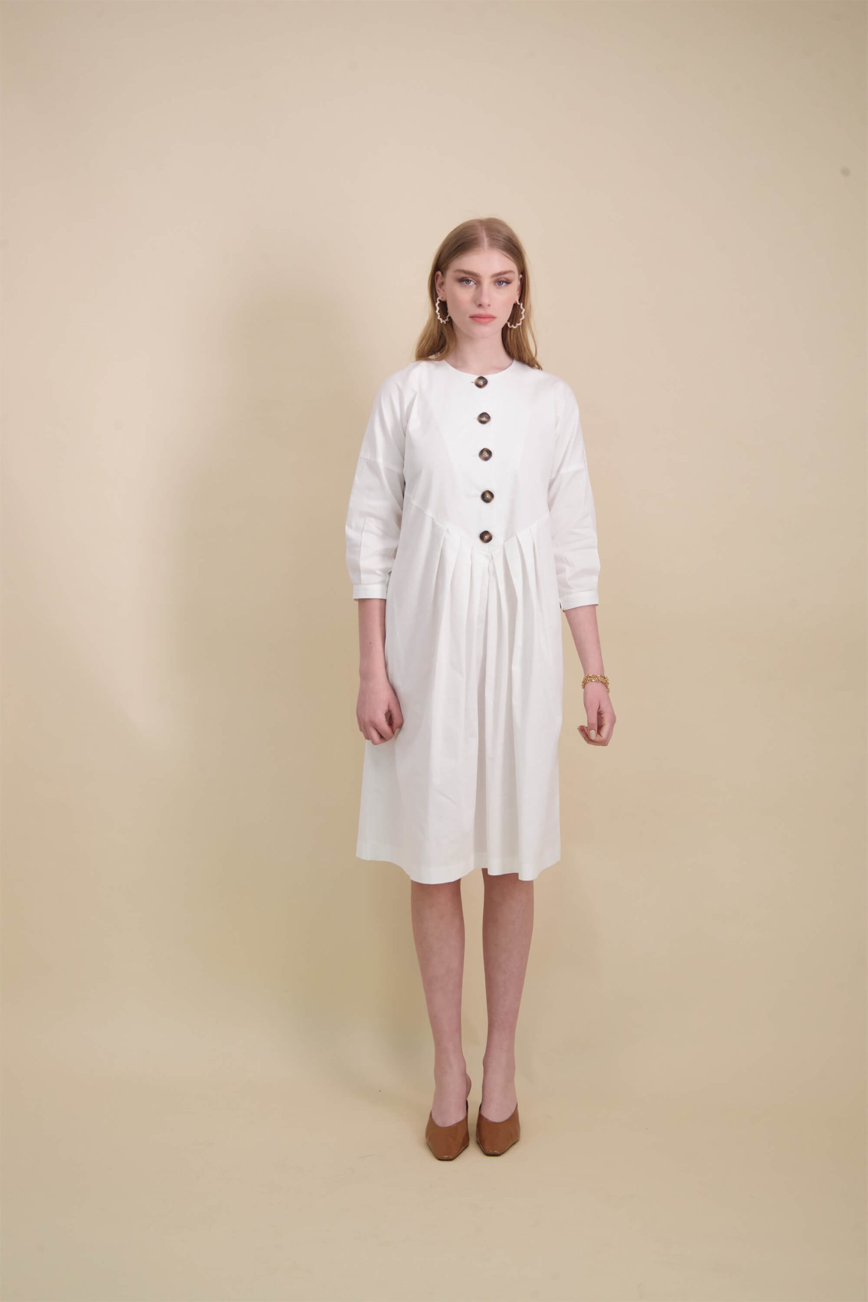 פרונט קדמי מעוטר בכפתורים מודגשים אופנתיים המקפיצים את מראה השמלה ומוסיפים לה טאצ ספורטיבי